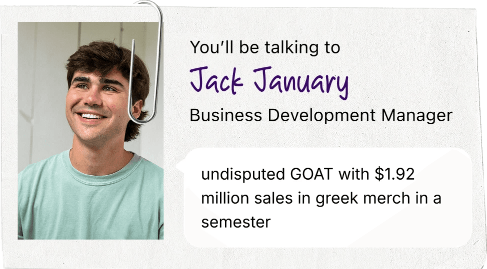 Tell us about your merch plans and choose a product to sample for free.